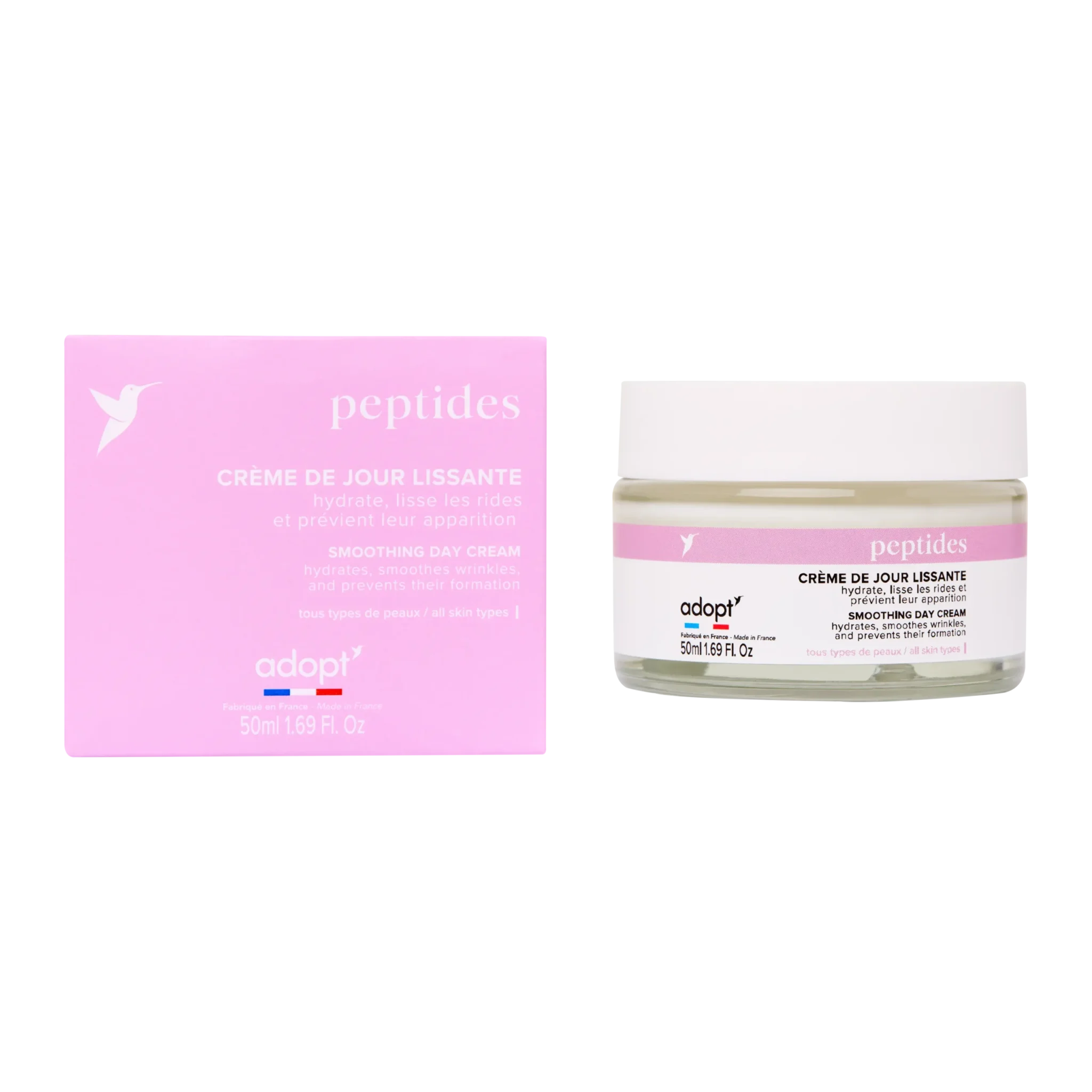 Adopt's smoothing day cream with peptides mainly targets signs of skin aging, particularly wrinkles and loss of firmness. Its formula is designed for skin in need of smoothing, plumping, and hydration. My expert opinion is that this cream is suitable for mature skin or those who want to prevent the appearance of early wrinkles, while providing comfort and suppleness on a daily basis.