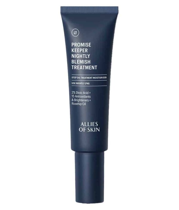 Visit Promise Keeper Nightly Blemish Treatment of the brand Allies of Skin is primarily intended for skin prone to blemishes, adult acne, and residual marques. Its complex formula aims to regulate sebum production, accelerate skin repair, and reduce post-inflammatory spots. My expert opinion is that this night cream is part of a comprehensive approach to treating acne-prone skin, while respecting the skin barrier thanks to its soothing and repairing active ingredients.