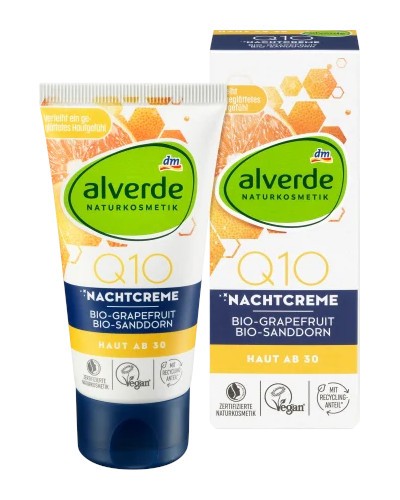 Visit Q10 Night Cream Organic Grapefruit Organic Sea Buckthorn of the brand Alverde is primarily intended for mature or tired skin, seeking to prevent and reduce the signs of skin aging, particularly wrinkles and loss of firmness. Its formula, rich in antioxidants and plant oils, aims to intensely nourish the skin during the night, a key period for cell regeneration. My expert opinion is that this cream is part of a natural and protective approach, suitable for skin in need of comfort and nighttime revitalization.