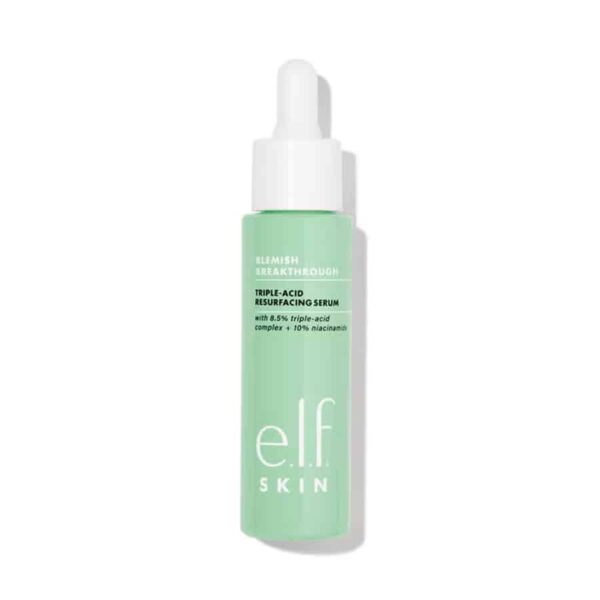 Visit Blemish Breakthrough Triple-Acid Resurfacing Serum of the brand e.l.f s’adresse principalement aux peaux sujettes aux imperfections, à la texture irrégulière et aux taches pigmentaires post-inflammatoires. Sa formulation cible l’acné, les pores dilatés et le teint terne, tout en visant à améliorer la qualité globale de la peau. Mon avis d’expert est que la combinaison d’acides exfoliants et d’actifs apaisants en fait un soin pertinent pour les peaux mixtes à grasses, ou pour celles qui souhaitent un effet resurfaçant sans agression excessive.