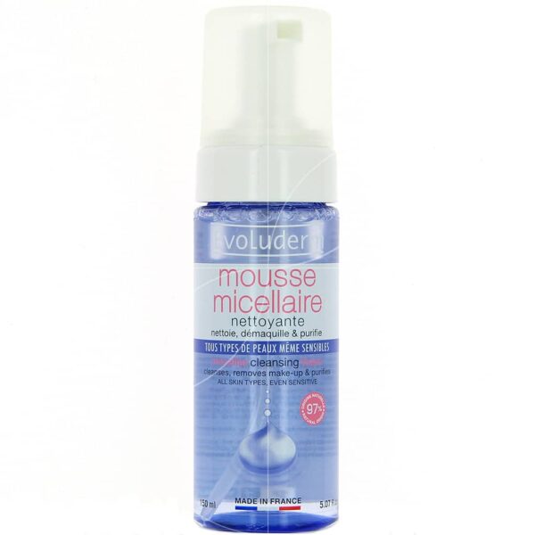 Evoluderm's Micellar Cleansing Foam is based on a cleansing base of gentle plant-derived surfactants: **decyl glucoside** (derived from glucose) and **cocamidopropyl betaine** (derived from coconut oil), which effectively remove impurities and excess sebum without altering the hydrolipidic film. Poloxamer 184** contributes to the foamy texture and solubilization of residues. Glycerine** and pentylene glycol** act as humectants, maintaining skin hydration during rinsing. Aloe barbadensis extract** provides light soothing and moisturizing properties thanks to its polysaccharides. Preservation is ensured by the chlorphenesin/sodium benzoate combination, with pH adjustment by citric acid. This product is suitable for normal to combination skins seeking respectful daily cleansing, as well as for sensitive skins reactive to more aggressive detergent formulas. It can be used morning and night to replace a conventional cleansing gel.