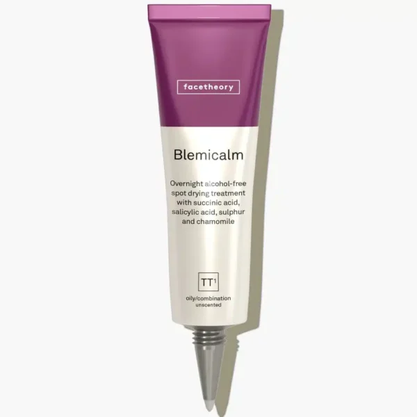 The product facetheory Blemicalm TT1 is primarily intended for skin prone to blemishes, acne, or excess sebum. Based on my expertise, Facetheory's formula aims to regulate the appearance of pimples, soothe skin inflammation, and reduce shine. This skincare product is part of a modern dermo-cosmetic approach, combining purifying and soothing active ingredients while respecting the skin's balance. In my opinion, the formula is suitable for combination to oily skin types seeking to reduce breakouts without damaging the skin barrier.