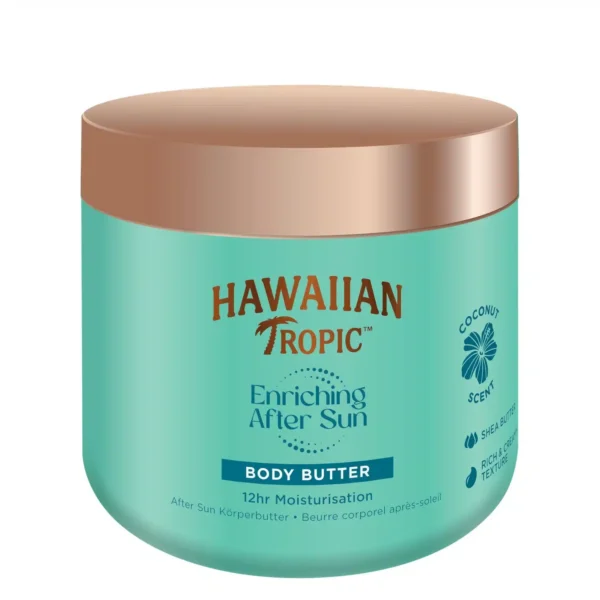 Visit After-Sun Body Butter of the brand Hawaiian Tropic is primarily intended for skin exposed to the sun, prone to dehydration, discomfort, and loss of suppleness. Its formula aims to soothe, nourish, and repair the epidermis after sun exposure, targeting skin dryness and the sensation of heat. My expert opinion is that the composition, rich in emollients and antioxidants, is consistent with the promise of a repairing after-sun treatment.