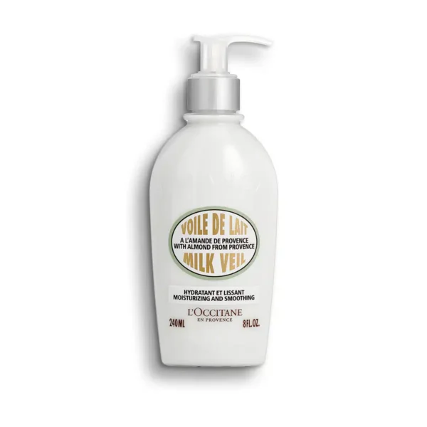 The product ALMOND MILK VEIL 240ML from L'Occitane en Provence is primarily intended for dry to very dry skin in need of hydration, nourishment, and comfort. Its formula aims to restore the skin barrier, soothe feelings of tightness, and leave the skin feeling velvety soft. My expert opinion is that this body care product is part of a high-quality dermo-cosmetic approach, suitable for daily use to prevent dehydration and strengthen skin suppleness.