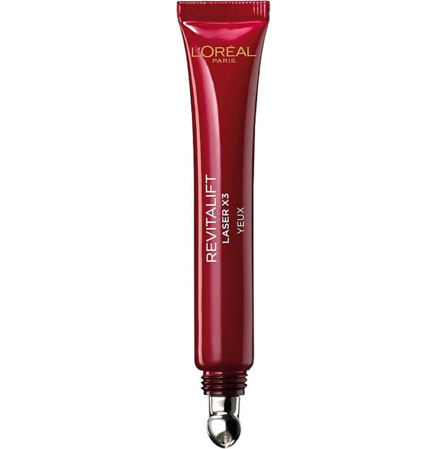 Le Revitalift Laser X3 Yeux de L’Oréal est une crème contour des yeux formulée autour de plusieurs actifs fonctionnels. Le **Pro-Xylane** (Hydroxypropyl Tetrahydropyrantriol) est un dérivé du xylose qui stimule la synthèse des glycosaminoglycanes dans le derme, contribuant à améliorer la densité et la fermeté cutanée. L’**acide hyaluronique hydrolysé**, de faible poids moléculaire, pénètre les couches superficielles de l’épiderme pour une hydratation ciblée et un effet repulpant visible. La **caféine** exerce une action vasoconstrictrice et drainante, utile pour atténuer les cernes vasculaires et les poches. L’**adénosine**, précurseur énergétique cellulaire, participe au soutien du métabolisme des fibroblastes, favorisant indirectement la production de collagène. L’**acétate de tocophéryle** (vitamine E estérifiée) apporte une protection antioxydante contre le stress oxydatif. La base silicone (diméthicone, diméthiconol) assure un film occlusif léger limitant la perte en eau transépidermique. Ce produit convient aux peaux matures ou présentant des signes de relâchement, de déshydratation et de cernes autour du contour des yeux, y compris les peaux sensibles grâce à l’absence de parfum dans la formule.