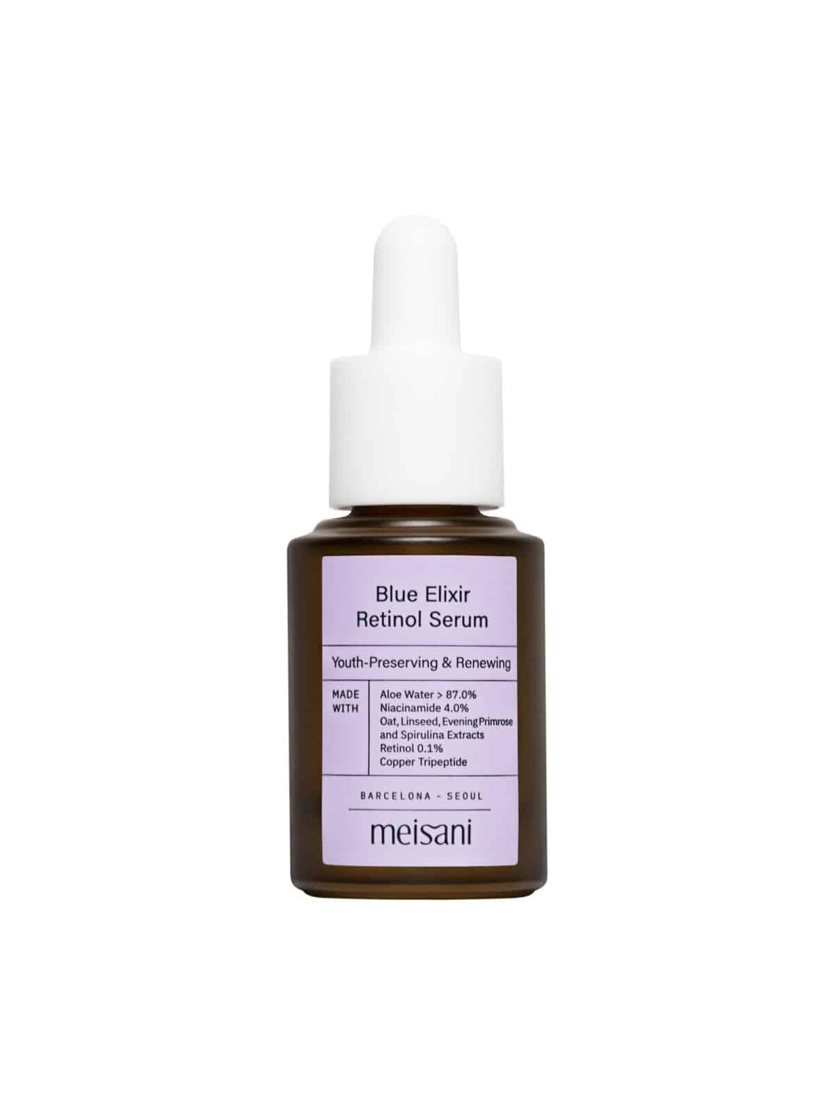 Visit Blue Elixir Retinol Serum from Meisani is primarily intended for individuals seeking to combat signs of skin aging, such as wrinkles, loss of firmness, and uneven skin tone. This serum also targets texture irregularities and pigmentation spots, thanks to a formulation focused on cell regeneration and radiance. My expert opinion is that the brand offers a sophisticated formula that is suitable for skin in need of renewal and anti-aging prevention, while incorporating soothing active ingredients to limit the irritation often associated with retinol.