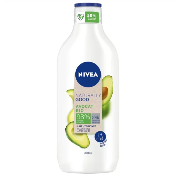 Moisturizing milk Nivea Naturally Good Organic Avocado is primarily intended for dry to very dry skin, seeking to restore comfort, suppleness, and skin protection. The Nivea brand's formula emphasizes intense hydration and nourishment, thanks to a selection of natural active ingredients. My expert opinion is that this product effectively targets skin dryness while respecting the hydrolipidic barrier, making it suitable for fragile or dehydrated skin.