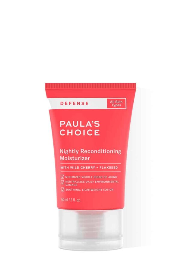 Visit DEFENSE Nightly Reconditioning Moisturizer Paula's Choice is primarily intended for skin exposed to urban oxidative stress, dehydration, and the first signs of aging. Its formula aims to strengthen the skin barrier, soothe, and revitalize the skin overnight. My expert opinion is that this product is part of a skin aging prevention approach, while also being suitable for sensitive or discomfort-prone skin, thanks to a selection of repairing and antioxidant active ingredients.