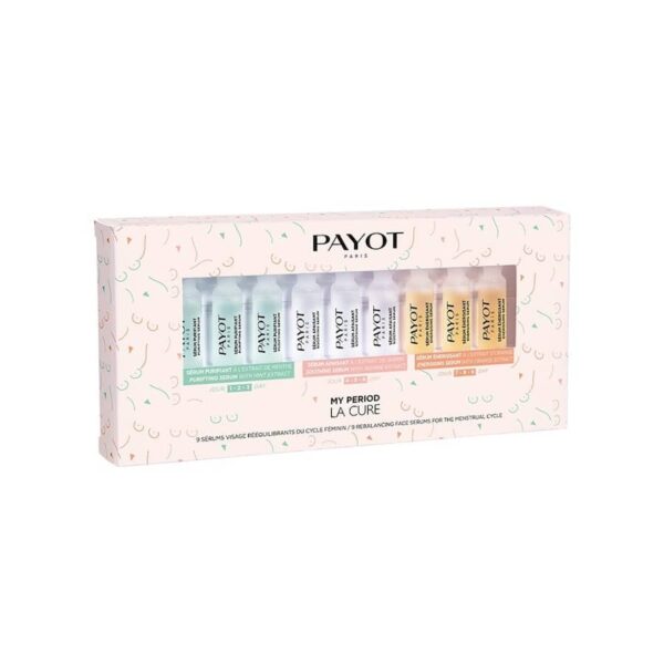 The serum Payot My Period La Cure – 9 Sérum Visage Rééquilibrant du Cycle Féminin cible principalement les déséquilibres cutanés liés au cycle menstruel, tels que les imperfections, la sensibilité, et la perte d’éclat. Ce produit s’adresse aux femmes sujettes à des variations hormonales impactant la qualité de la peau. La formulation de Payot se distingue par une approche globale, visant à rééquilibrer la peau et à atténuer les signes visibles du cycle féminin, tout en respectant la physiologie cutanée.