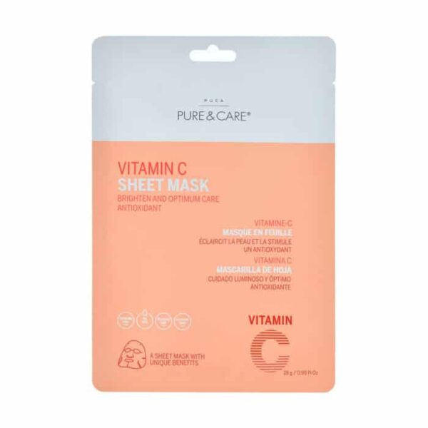 Visit Vitamin C Sheet Mask of the brand Pure & Care is primarily intended for skin in need of radiance, anti-aging prevention, and a more even complexion. This mask effectively targets dull skin, pigmentation spots, and the first signs of aging. Its formula, rich in antioxidants and moisturizing ingredients, makes it suitable for both young and mature skin types seeking to boost radiance and strengthen the skin barrier.