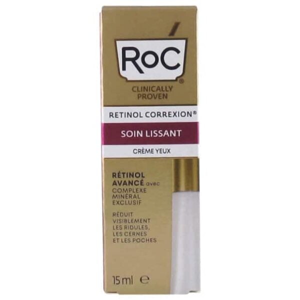 RoC's Retinol Correxion eye contour cream combines several functional active ingredients to target the visible signs of periorbital skin aging. Retinol, derived from vitamin A, stimulates cell renewal and collagen synthesis, helping to reduce fine lines and improve skin texture. It is combined with dihydroxy methylchromone, a RoC-patented active ingredient that potentiates the action of retinol while limiting irritation. The mineral complex - magnesium aspartate, zinc gluconate and copper gluconate - supports the skin's enzymatic mechanisms. Panthenol (provitamin B5) and tocopheryl acetate (vitamin E) provide soothing and antioxidant properties, while ascorbic acid (vitamin C) boosts protection against oxidative stress. Glycerine and sorbitol provide basic hydration. The formula is stabilized with BHT and propyl gallate to preserve the integrity of retinol. Suitable for mature skin with fine lines, sagging or uneven tone around the eyes, but requires a gradual introduction for sensitive skin due to the presence of retinol.