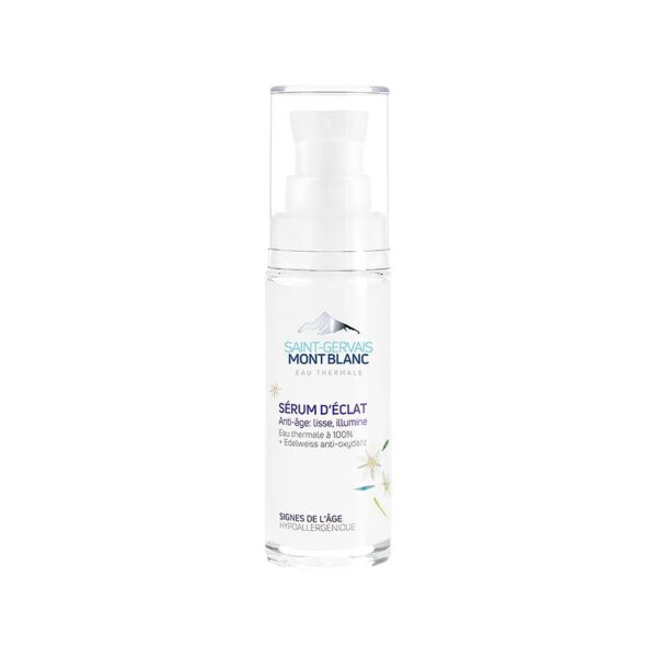 Le sérum d’éclat « Signes de l’Âge » de Saint-Gervais Mont Blanc s’adresse principalement aux peaux présentant des premiers signes de vieillissement cutané : perte d’éclat, ridules, teint terne et manque d’hydratation. Mon analyse de la formulation révèle une volonté de cibler à la fois la luminosité du teint et la prévention du vieillissement, tout en respectant la sensibilité cutanée grâce à des actifs apaisants et hydratants. Ce produit s’inscrit dans une démarche de soin global, adapté aux peaux en quête de vitalité et de protection face aux agressions extérieures.