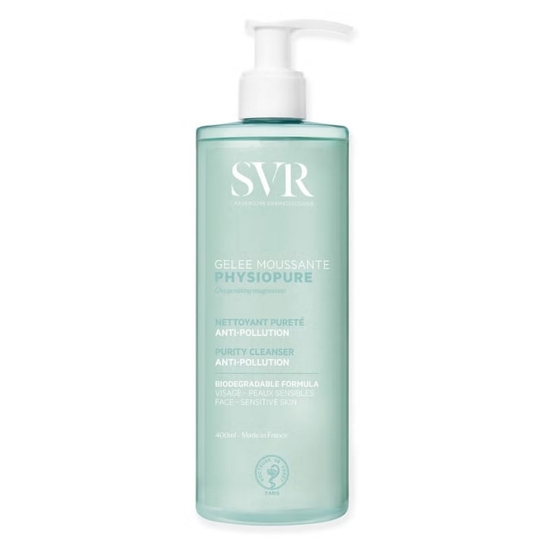 AQUA, GLYCERIN, DISODIUM COCOYL GLUTAMATE (Anionic surfactant), DECYL GLUCOSIDE (Nonionic surfactant), XANTHAN GUM, COCO-BETAINE (Amphoteric surfactant), MAGNESIUM PCA, CITRIC ACID, POTASSIUM SORBATE, SODIUM BENZOATE, PERFUM (Fragrance) Physiopure Foaming Gel by Laboratoire SVR is a cleanser formulated around a gentle cleansing system combining disodium cocoyl glutamate (a surfactant derived from glutamic acid and coconut oil), decyl glucoside (a plant-derived surfactant) and coco-betaine (an amphoteric surfactant). This combination eliminates impurities and excess sebum while limiting damage to the hydrolipidic film. Glycerine acts as a humectant, retaining water in the superficial layers of the epidermis, while magnesium PCA contributes to hydration and helps maintain the skin's mineral balance. Xanthan gum ensures the product's gel-like texture. The formula is sulfate-free (SLS/SLES), making it suitable for sensitive, reactive skin or skin prone to post-cleansing discomfort. It is also suitable for normal to combination skin types who need daily cleansing that respects the cutaneous barrier.