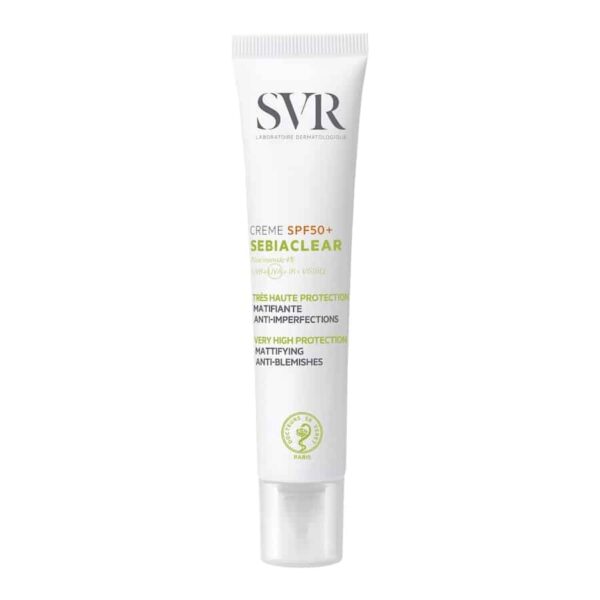 La Sebiaclear Crème SPF 50+ de Laboratoire SVR est une protection solaire formulée spécifiquement pour les peaux grasses, mixtes et à tendance acnéique. Son système filtrant combine plusieurs filtres UV organiques de nouvelle génération — Diethylamino Hydroxybenzoyl Hexyl Benzoate, Ethylhexyl Triazone, Bis-Ethylhexyloxyphenol Methoxyphenyl Triazine et Diethylhexyl Butamido Triazone — assurant une protection large spectre UVA/UVB à indice élevé. La niacinamide (vitamine B3) agit sur la régulation du sébum, l’atténuation des irrégularités de teint et le renforcement de la barrière cutanée. L’acide salicylique, kératolytique et comédolytique, contribue à désobstruer les pores et à limiter l’apparition des imperfections. Le Lepidium Sativum Sprout Extract (extrait de cresson alénois) est associé à une action séborégulatrice et protectrice cellulaire. La texture est formulée avec des émollients légers (Isononyl Isononanoate, C12-15 Alkyl Benzoate) et des agents structurants qui limitent le fini brillant. Le tocophérol apporte une protection antioxydante complémentaire. Ce produit convient aux peaux grasses à imperfections, y compris aux peaux sous traitement dermatologique pour l’acné, nécessitant une photoprotection quotidienne non comédogène.