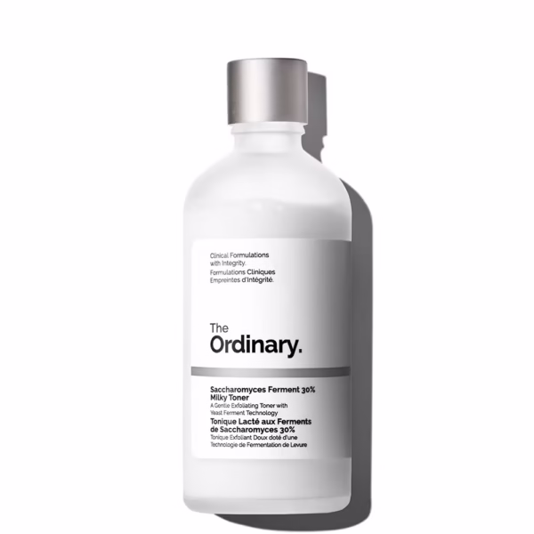 AQUA, FAEX EXTRACT (Yeast extracts), SQUALANE (Squalane, Hydrogenated Oil), LAURYL GLUCOSIDE (Nonionic surfactant), MYRISTYL GLUCOSIDE, POLYGLYCERYL-6 LAURATE, ISOCETETH-20, TRISODIUM ETHYLENEDIAMINE DISUCCINATE, CITRIC ACID, SODIUM CITRATE, SODIUM HYDROXIDE, PHENOXYETHANOL, CHLORPHENESIN This milky toner from The Ordinary is based primarily on a 30 % extract of *Saccharomyces* (baker's yeast) ferments, a biotechnological active ingredient rich in amino acids, peptides, polysaccharides and B-group vitamins derived from the fermentation process. These compounds act synergistically to support cell renewal, strengthen the skin barrier and improve radiance through a keratinocyte metabolic stimulation mechanism. Squalane, an emollient lipid structurally similar to human sebum, completes the formula by providing non-comedogenic hydration and limiting insensible water loss. The milky texture is obtained thanks to a combination of gentle surfactants of glucosidic origin (lauryl glucoside, myristyl glucoside, polyglyceryl-6 laurate) and a solubilizing agent (isoceteth-20), which confer light emulsification without altering the hydrolipidic film. The pH is adjusted by citric acid and sodium citrate to respect the skin's physiological acidity. This product is particularly suitable for dull, tired or uneven-textured skin, as well as sensitive skin looking for a tolerable fermented skin care product. Not recommended for people with a known allergy to phenoxyethanol or chlorphenesin.Informations complémentaires