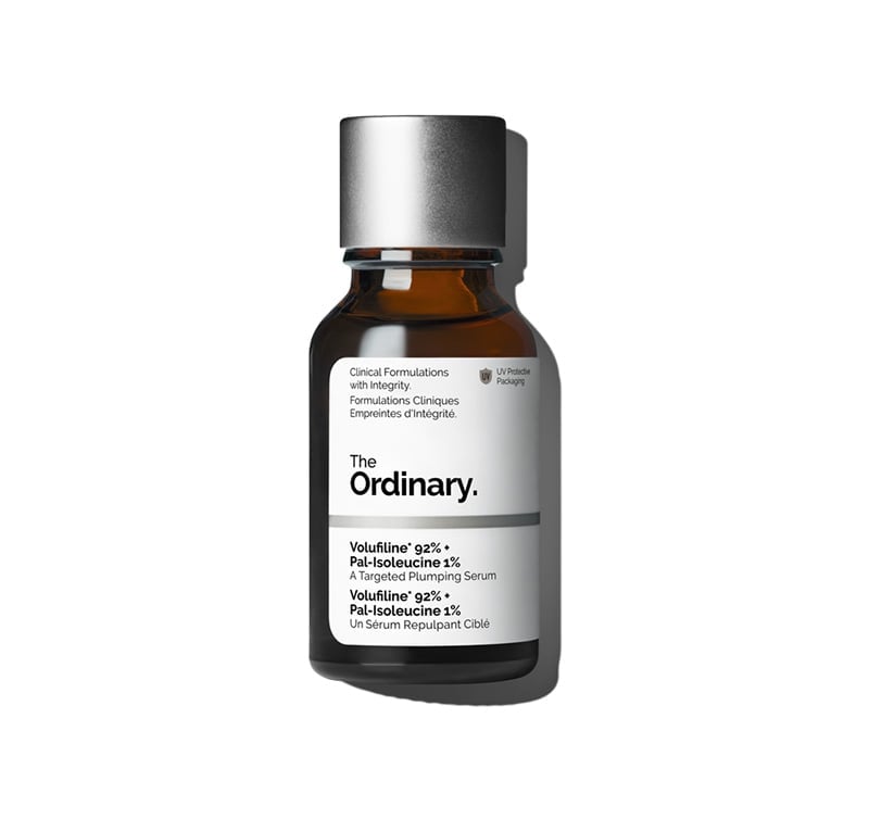 This serum from The Ordinary combines two active ingredients targeting skin volume and firmness. Volufiline (extract of *Anemarrhena asphodeloides* standardized for sarsasapogenin) acts by stimulating lipogenesis in adipocytes in subcutaneous tissue, promoting a visible volumizing effect on treated areas. Palmitoyl Isoleucine (Pal-Isoleucine at 1 %), a lipophilic peptide, supports extracellular matrix restructuring by modulating fibroblast activity and improving tissue elasticity. The formula is anhydrous, based on hydrogenated polyisobutene oil, ensuring good penetration of lipophilic active ingredients and a light occlusive texture. Caprylyl glycol acts as a conditioner and preservative, while tocopherol provides antioxidant protection. This product is ideal for skin showing localized volume loss (cheeks, lips, face contour) or incipient sagging. It is ideal for mature skins or those wishing to prevent age-related fat loss. Apply locally, morning and/or evening.