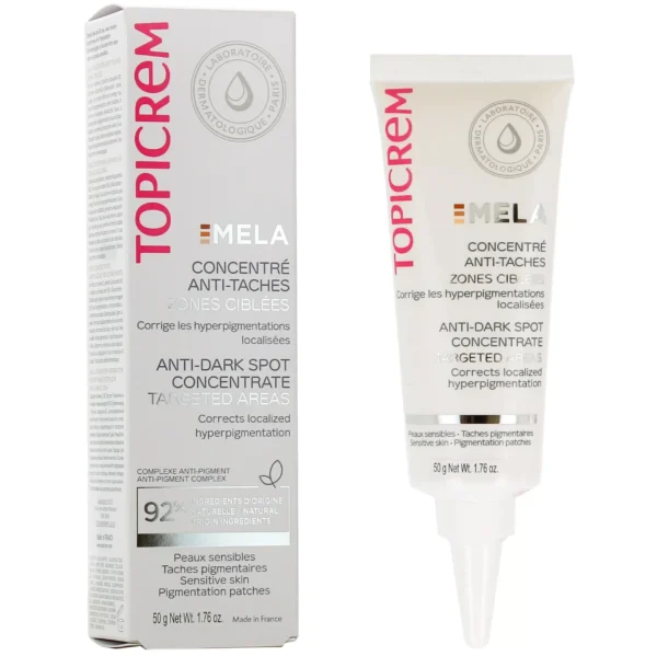 Visit Topicrem MELA Targeted Anti-Dark Spot Concentrate is primarily intended for people concerned with pigmentation spots, whether caused by sun exposure, aging, or post-inflammatory disorders. The Topicrem brand offers a targeted solution that is suitable for all skin types, even sensitive skin. My analysis of the formulation reveals a desire to both reduce existing spots and prevent their reappearance, while respecting the skin's balance.