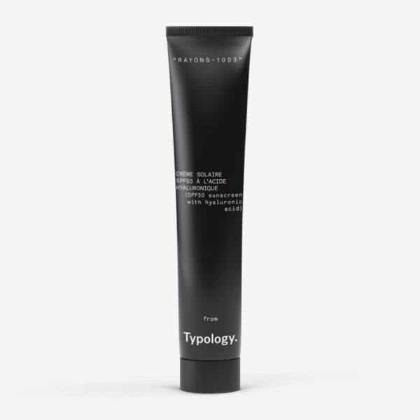 AQUA, PROPANEDIOL DICAPRYLATE, DIETHYLAMINO HYDROXYBENZOYL HEXYL BENZOATE (Uvinul A plus, SHORT UVA filter, LONG UVA filter), MYRISTYL MYRISTATE (Potentially comedogenic), ETHYLHEXYL TRIAZONE (Uvinul t150, UVB filter), TITANIUM DIOXIDE (Mineral UVB filter, SHORT UVA, LONG UVA, Whitening effect), BIS-ETHYLHEXYLOXYPHENOL METHOXYPHENYL TRIAZINE (Tinosorb S, UVB filter, SHORT UVA, LONG UVA), RICE STARCH (Rice), Polygyceryl-6 Stearate, BEHENYL ALCOHOL, PHENYLBENZIMIDAZOLE SULFONIC ACID (Ensulizole, UVB filter), DIISOSTEAROYL POLYGLYCERYL-3 DIMER DILINOLEATE, CAPRYLIC/CAPRIC TRIGLYCERIDE, 1,2-HEPTANEDIOL, PROPANEDIOL, SODIUM STEAROYL GLUTAMATE, HYDROLYZED HYALURONIC ACID (Hydrolyzed hyaluronic acid), Aloe Barbadensis Leaf Juice Powder (Aloe vera), LIMONIUM NARBONENSE FLOWER/LEAF/STEM EXTRACT, ALUMINA (Mattifying/absorbent), SODIUM HYDROXIDE, STEARIC ACID (Fatty acid), POLYGLYCERYL-6 BEHENATE, GLYCERIN, SODIUM GLUCONATE, ACACIA SENEGAL GUM, XANTHAN GUM, O-CYMEN-5-OL, CITRIC ACID This SPF 50 sun cream from Typology combines broad-spectrum sun protection based on a combination of chemical and mineral filters: DIETHYLAMINO HYDROXYBENZOYL HEXYL BENZOATE (Uvinul A Plus), ETHYLHEXYL TRIAZONE and BIS-ETHYLHEXYLOXYPHENOL METHOXYPHENYL TRIAZINE provide effective protection against UVA and UVB rays, while TITANIUM DIOXIDE (mineral filter) completes coverage by physically reflecting radiation. PHENYLBENZIMIDAZOLE SULFONIC ACID reinforces UVB protection. On the moisturizing front, HYDROLYZED HYALURONIC ACID, in fragmented form, penetrates more easily into the superficial layers of the epidermis to support skin hydration. ALOE BARBADENSIS extract and LIMONIUM NARBONENSE provide complementary soothing and antioxidant properties. The texture is stabilized by gentle emollients (CAPRYLIC/CAPRIC TRIGLYCERIDE, MYRISTYL MYRISTATE) and natural gelling agents (XANTHAN GUM, ACACIA SENEGAL GUM), giving a comfortable finish without excess oiliness. This product is suitable for normal to combination skin seeking daily sun protection with moisturizing support, including sensitive skin thanks to the absence of fragrance and the presence of well-tolerated filters.