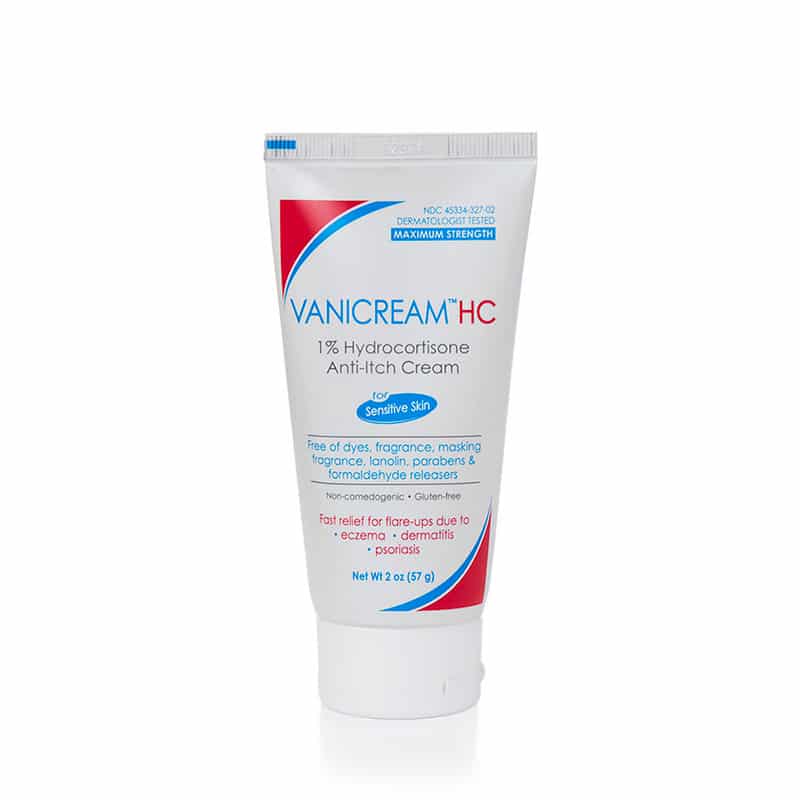 I recommend applying Vanicream HC 1% Hydrocortisone cream to the affected areas once or twice a day, preferably after washing and on clean skin. Use should be limited in time (generally less than 7 consecutive days) to avoid the side effects of corticosteroids. It is compatible with simple moisturizers, but should not be used in combination with other products containing corticosteroids or irritating active ingredients (acids, retinoids).