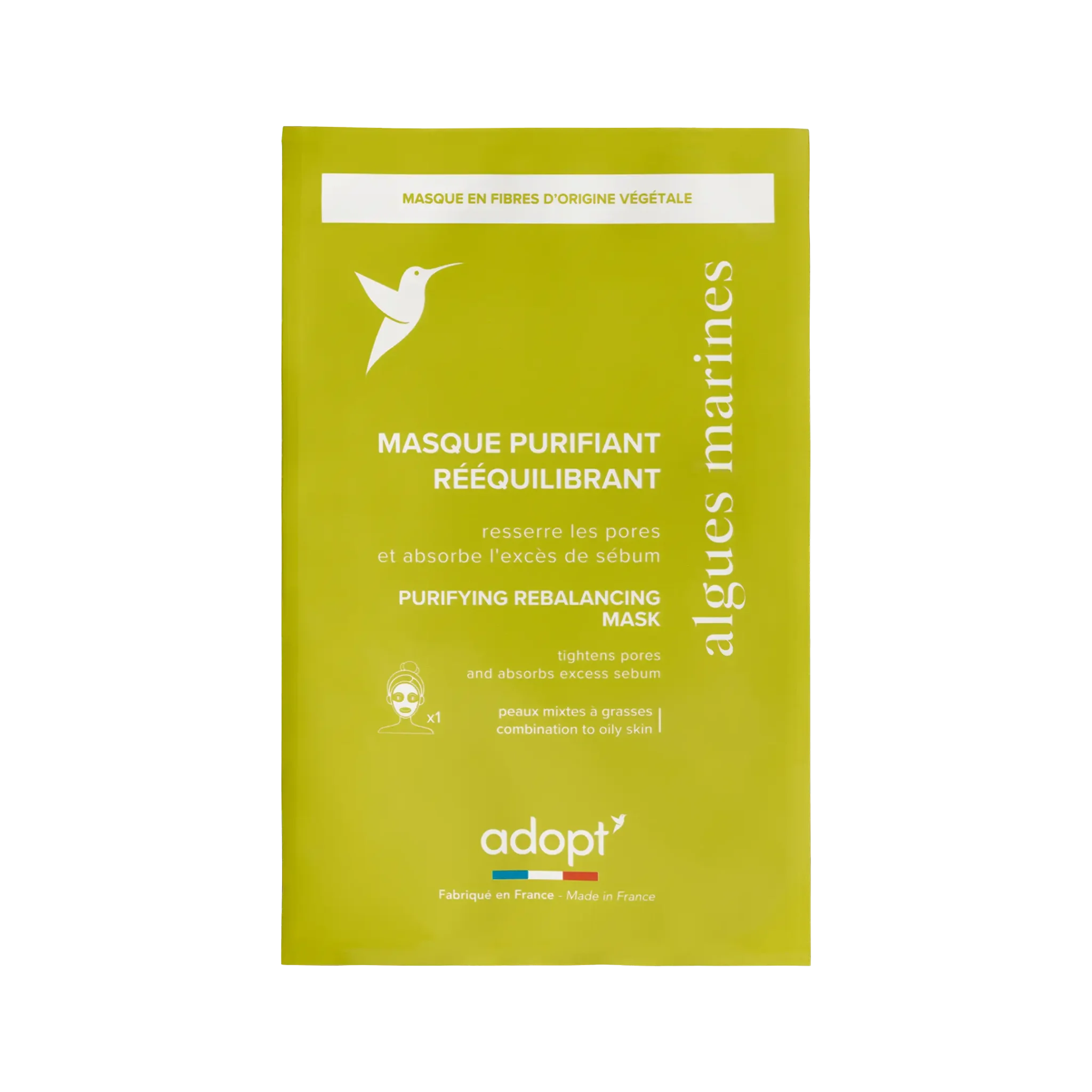 Le MASQUE PURIFIANT RÉÉQUILIBRANT aux algues marines de la marque AdoptPurifiant & Matifiant s’adresse principalement aux peaux mixtes à grasses, sujettes aux brillances, pores dilatés et imperfections. Ce masque vise à purifier, matifier et rééquilibrer la peau, tout en apportant une sensation de fraîcheur. D’après mon analyse, la formulation s’appuie sur des actifs marins et végétaux reconnus pour leur efficacité sur l’excès de sébum et la détoxification cutanée, tout en respectant l’équilibre hydrique de la peau.