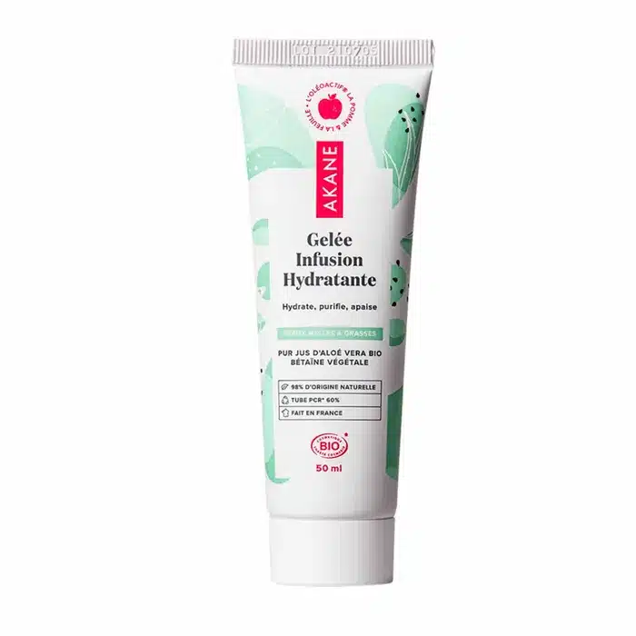 Le produit Gelée Infusion Hydratante Pur Jus d’Aloé Vera Bio de la marque Akane s’adresse principalement aux peaux mixtes à grasses en quête d’hydratation sans effet gras. Sa formulation vise à rééquilibrer l’hydratation cutanée tout en apportant une sensation de fraîcheur et de légèreté. Mon avis d’expert est que ce soin répond efficacement aux besoins des peaux sujettes aux brillances, à la déshydratation superficielle et aux imperfections légères, grâce à une sélection d’actifs naturels et non comédogènes.