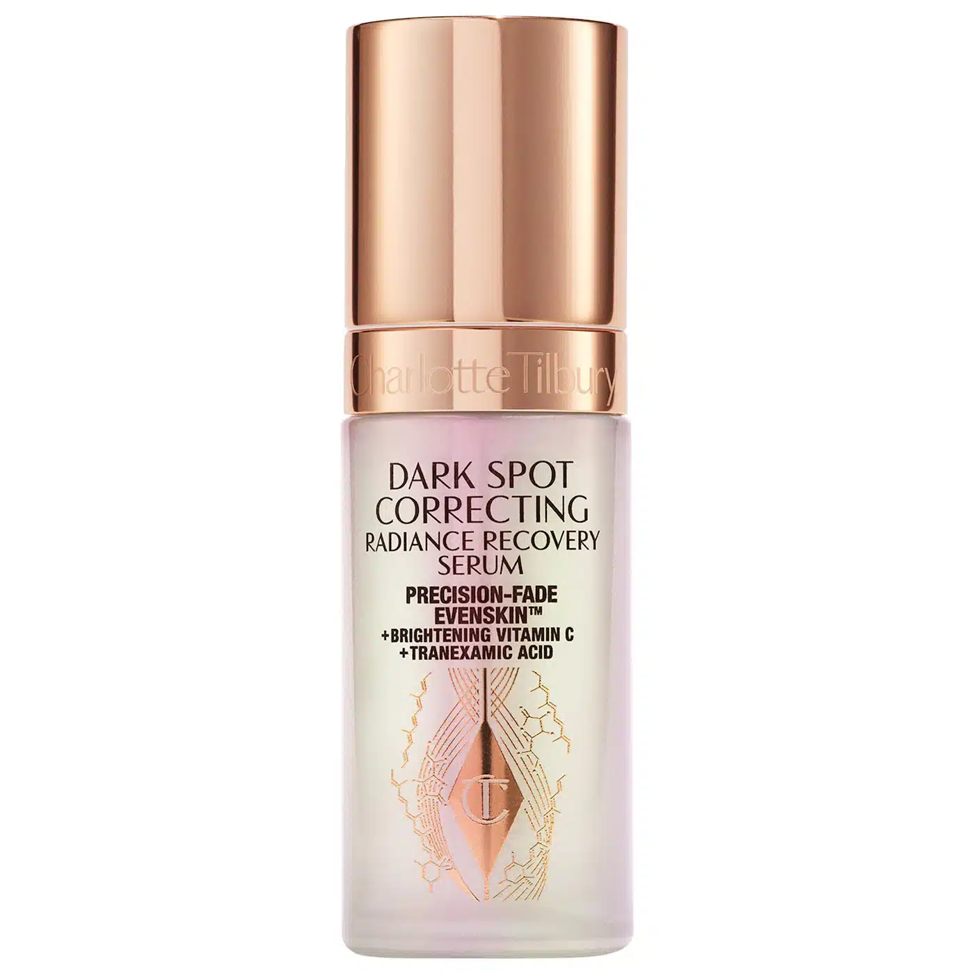 Le Dark Spot Correcting Radiance Recovery Serum de Charlotte Tilbury cible principalement l’hyperpigmentation, les taches brunes et le manque d’éclat cutané. Ce sérum s’adresse aux personnes souhaitant corriger les irrégularités pigmentaires, prévenir leur apparition et retrouver un teint uniforme. La formulation, riche en actifs éclaircissants et réparateurs, s’inscrit dans une démarche dermo-cosmétique moderne, adaptée aux peaux sujettes aux taches post-inflammatoires, au photovieillissement ou à la perte de luminosité.