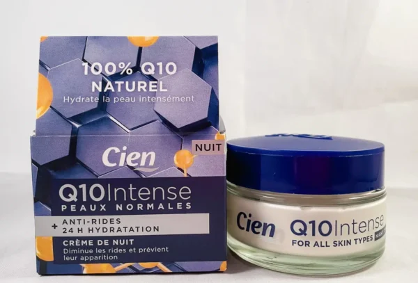 La crème de nuit Cien Q10 Intense Peaux normales s’adresse principalement aux peaux en quête de prévention et de correction des premiers signes de l’âge, notamment les rides et la perte de fermeté. La marque Cien propose ici une formule orientée vers l’hydratation, la régénération nocturne et la lutte contre le stress oxydatif. Mon avis d’expert est que cette formulation répond bien aux besoins des peaux normales, en apportant confort et protection sans surcharge grasse excessive.