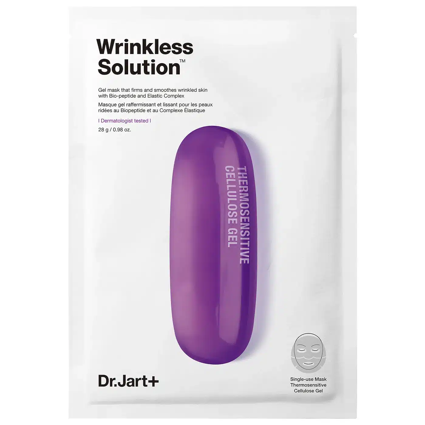 Le masque Dermask Wrinkless Solution Face Mask de la marque Dr.Jart+ cible principalement les signes du vieillissement cutané, en particulier les rides et la perte de fermeté. Sa formulation est pensée pour les peaux matures ou celles qui souhaitent prévenir l’apparition des rides. Mon avis d’expert est que ce produit s’inscrit dans une démarche de soin intensif, grâce à une synergie d’actifs reconnus pour leur efficacité sur la régénération cutanée et l’hydratation profonde.