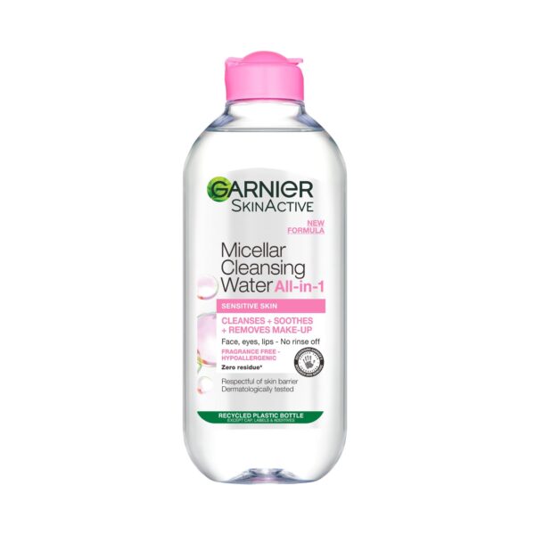AQUA, HEXYLENE GLYCOL, GLYCERIN, POLOXAMER 184 (Tensioactif non ionique), DISODIUM COCOAMPHODIACETATE (Tensioactif amphotère), DISODIUM EDTA, MYRTRIMONIUM BROMIDE L’eau micellaire Garnier SkinActive est une solution démaquillante à base de micelles — des agrégats moléculaires formés par le Poloxamer 184 et le Disodium Cocoamphodiacetate (tensioactif doux d’origine cocotier) — qui captent et solubilisent les impuretés, le sébum et le maquillage sans nécessiter de rinçage. La Glycérine assure un effet humectant en limitant la déshydratation cutanée lors du nettoyage. L’Hexylène Glycol agit comme co-solvant et agent de texture, tandis que le Disodium EDTA stabilise la formule en chélatant les ions métalliques de l’eau. Le Myrtrimonium Bromide, agent conservateur quaternaire, assure l’intégrité microbiologique du produit. Cette formule convient aux peaux normales à mixtes souhaitant un démaquillage rapide et sans friction, y compris pour les zones sensibles comme le contour des yeux. Elle est moins adaptée aux peaux très sèches nécessitant un nettoyage plus nourrissant, ou aux porteurs de maquillage waterproof résistant, pour lesquels une formule biphasée serait plus efficace.Informations complémentaires