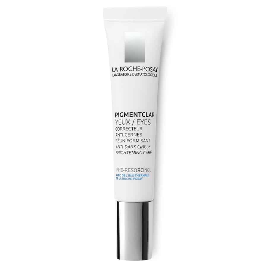 AQUA, GLYCERIN, BUTYLENE GLYCOL, DIMETHICONE (Silicone), NIACINAMIDE (Vitamine B3), ISOPROPYL PALMITATE (Comédogène potentiel), CETEARYL ALCOHOL, AMMONIUM POLYACRYLOYLDIMETHYL TAURATE, CI 77891 (Colorant blanc: Dioxyde de titane), GINKGO BILOBA LEAF EXTRACT (Ginkgo), BUTYROSPERMUM PARKII BUTTER (Beurre végétal de karité), TIN OXIDE, STEARIC ACID (Acide gras), GLYCERYL STEARATE, DIMETHICONE/VINYL DIMETHICONE CROSSPOLYMER (Silicone), DIMETHICONOL (Silicone), CAFFEINE (Actif issue du Caféier d’Arabie), PEG/PPG/POLYBUTYLENE GLYCOL-8/5/3 GLYCERIN, PEG-100 STEARATE (Tensioactif non ionique), SODIUM HYDROXIDE, SODIUM LAUROYL GLUTAMATE (Tensioactif anionique), MYRISTIC ACID (Acide gras, Comédogène potentiel), LYSINE (Acide aminé), PALMITIC ACID (Acide gras), ALUMINA (Matifiant/absorbant), ALUMINUM HYDROXIDE, PHENYLETHYL RESORCINOL, MAGNESIUM CHLORIDE, ASCORBYL GLUCOSIDE (Dérivé de vitamine C), POLOXAMER 338, DISODIUM EDTA, ISOPROPYL TITANIUM TRIISOSTEARATE, HYDROLYZED RICE PROTEIN, CAPRYLYL GLYCOL, CITRIC ACID, TRISODIUM ETHYLENEDIAMINE DISUCCINATE, XANTHAN GUM, PENTYLENE GLYCOL, FERULIC ACID (Antioxydant), PHENOXYETHANOL, MICA (Colorant nacré), CI 77491 (Colorant rouge, Trioxyde de Fer) Le Pigmentclar Yeux de La Roche-Posay est un soin correcteur ciblant les cernes et l’hétérogénéité du teint de la zone péri-oculaire. Sa formule associe plusieurs actifs dépigmentants et éclaircissants aux mécanismes complémentaires : la **niacinamide** (vitamine B3) inhibe le transfert des mélanosomes vers les kératinocytes, réduisant ainsi les hyperpigmentations superficielles ; l’**ascorbyl glucoside**, forme stable de vitamine C, agit comme antioxydant et freine la synthèse de mélanine ; le **phénylethyl résorcinol** est un inhibiteur de la tyrosinase, enzyme clé de la mélanogenèse ; l’**acide férulique** renforce l’efficacité des antioxydants et contribue à la protection contre le stress oxydatif. La **caféine** exerce une action vasoconstrictrice et décongestionnante, utile pour les cernes vasculaires. L’**extrait de Ginkgo biloba** apporte des propriétés antioxydantes et favorise la microcirculation locale. Les **protéines hydrolysées de riz** participent à l’hydratation et au lissage de surface. La formule intègre également des agents de correction optique (CI 77891, mica, oxyde d’étain) qui neutralisent visuellement les cernes à l’application. Ce produit convient aux peaux présentant des cernes pigmentaires, vasculaires ou mixtes, y compris les peaux sensibles, grâce à l’absence de parfum et à la tolérance habituelle des formules La Roche-Posay.Informations complémentaires
