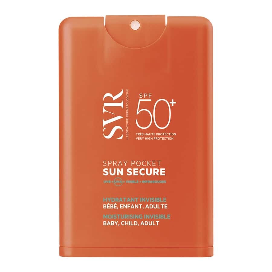 AQUA, DICAPRYLYL ETHER, DIISOPROPYL ADIPATE, DIETHYLAMINO HYDROXYBENZOYL HEXYL BENZOATE (Uvinul A plus, Filtre UVA COURT, UVA LONG), ETHYLHEXYL TRIAZONE (Uvinul t150, Filtre UVB), C12-15 ALKYL BENZOATE, BIS-ETHYLHEXYLOXYPHENOL METHOXYPHENYL TRIAZINE (Tinosorb S, Filtre UVB, UVA COURT, UVA LONG), DIETHYLHEXYL BUTAMIDO TRIAZONE (Uvasorb HEB, Filtre UVB, UVA COURT), SILICA (Silica), BEHENETH-25, PROPANEDIOL, PENTYLENE GLYCOL, ACRYLATES/C12-22 ALKYL METHACRYLATE COPOLYMER, HYDROGENATED VEGETABLE OIL (Comédogène potentiel), NIACINAMIDE (Vitamine B3), CETEARYL ALCOHOL, POLYESTER-7, COCO-GLUCOSIDE (Tensioactif non ionique), MICROCRYSTALLINE CELLULOSE, NEOPENTYL GLYCOL DIHEPTANOATE, PARFUM (Parfum), 1,2-HEXANEDIOL, CAPRYLYL GLYCOL, GLYCERIN, ARGININE (Acide aminé), CITRIC ACID, TOCOPHEROL (Vitamine E), CELLULOSE GUM, HYDROXYETHYL ACRYLATE/SODIUM ACRYLOYLDIMETHYL TAURATE COPOLYMER, DISODIUM LAURETH SULFOSUCCINATE (Tensioactif anionique), GLYCINE SOJA OIL (Huile végétale de Soja), LECITHIN, POLYSORBATE 60 (Tensioactif non ionique), SORBITAN ISOSTEARATE, LEPIDIUM SATIVUM SPROUT EXTRACT (Cresson alénois) Le Sun Secure Spray Pocket SPF 50+ de SVR est une protection solaire en format nomade (20 ml) formulée autour d’une combinaison de filtres UV organiques de nouvelle génération : le diéthylamino hydroxybenzoyl hexyl benzoate et l’éthylhexyl triazone assurent une protection UVA/UVB large spectre, renforcée par le bis-éthylhexyloxyphénol méthoxyphényl triazine (Tinosorb S) et le diéthylhexyl butamido triazone (Tinosorb M), deux filtres photostables reconnus pour leur efficacité à bloquer les rayonnements à haute énergie. La formule intègre également de la niacinamide (vitamine B3), qui contribue à réguler la production de mélanine et à renforcer la barrière cutanée, ainsi que du tocophérol (vitamine E) à action antioxydante pour limiter le stress oxydatif induit par les UV. L’extrait de cresson alénois (*Lepidium sativum*) apporte des propriétés antioxydantes complémentaires. La texture spray légère, stabilisée par des agents filmogènes et émulsifiants doux (coco-glucoside, disodium laureth sulfosuccinate), convient aux peaux normales à mixtes souhaitant une application rapide en déplacement. Ce produit est adapté aux adultes recherchant une protection quotidienne ou en complément d’une protection principale, notamment en milieu urbain ou lors d’expositions solaires modérées.Informations complémentaires
