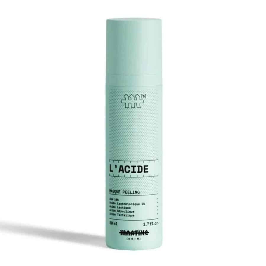 Ce masque peeling de Martine [Skin] repose sur une combinaison d’acides exfoliants à différents niveaux d’action. L’acide lactique (AHA) et l’acide glycolique (AHA) favorisent le renouvellement cellulaire en dissolvant les liaisons entre les cornéocytes, affinant ainsi le grain de peau et améliorant l’éclat. L’acide lactobionique, un polyhydroxy-acide (PHA), agit plus en surface avec une tolérance cutanée supérieure, tout en apportant une action hydratante via sa capacité à lier l’eau. L’acide tartrique complète ce complexe en soutenant l’efficacité des autres AHA. L’arginine joue un rôle tampon pour moduler le pH de la formule et limiter l’irritation potentielle. La glycérine et le propanediol assurent le maintien de l’hydratation cutanée pendant le processus d’exfoliation. Le tocophérol (vitamine E) apporte une protection antioxydante. Ce produit convient aux peaux ternes, à texture irrégulière ou présentant des hyperpigmentations légères. En raison de la présence d’acides forts comme l’acide glycolique, il est déconseillé aux peaux très sensibles ou réactives, et une protection solaire est indispensable en cas d’utilisation régulière.