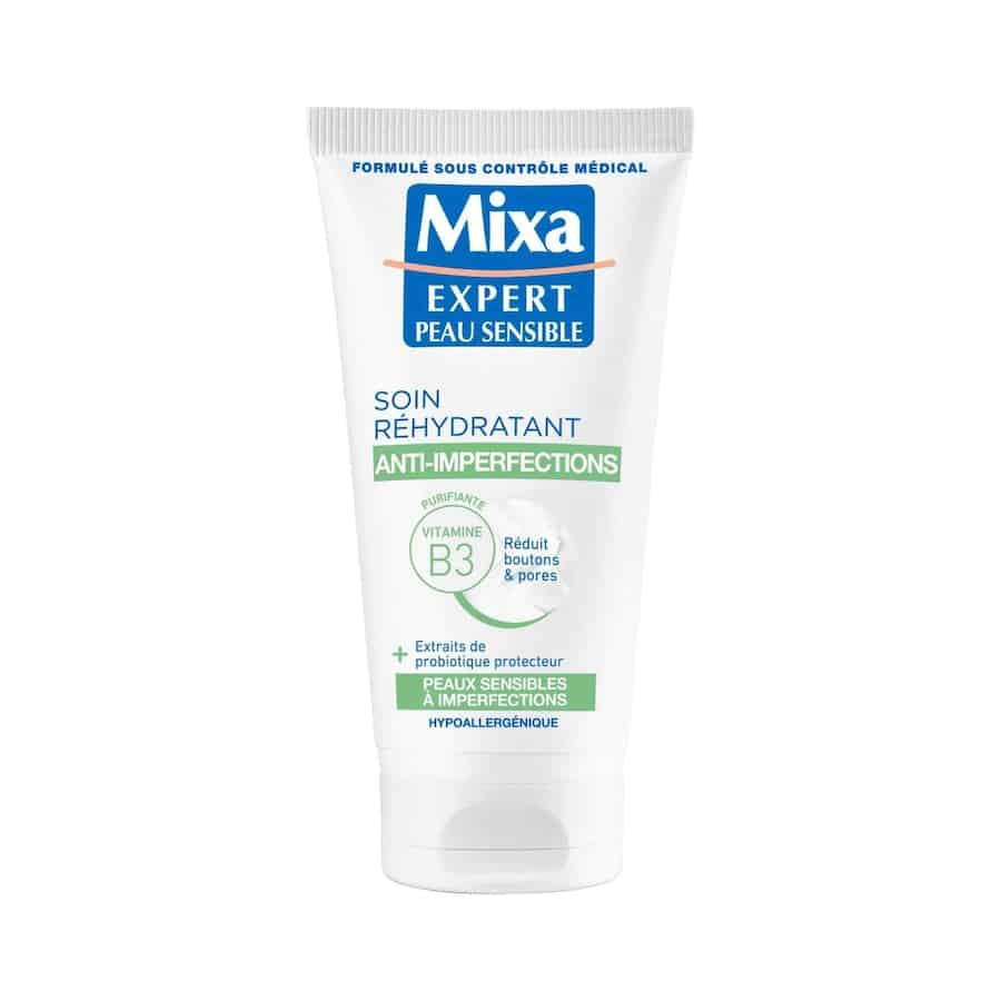 Le Soin Très Hydratant anti-imperfections 2 en 1 de MixaExpert Peau Sensible s’adresse principalement aux peaux sensibles sujettes aux imperfections, telles que boutons, pores dilatés et excès de sébum, tout en répondant au besoin d’hydratation. La formulation vise à équilibrer l’hydratation cutanée sans alourdir ni agresser la barrière cutanée, ce qui est essentiel pour les peaux réactives. Mon avis est que la marque propose ici une approche globale, adaptée aux peaux mixtes à grasses, cherchant à limiter les imperfections sans sacrifier le confort.