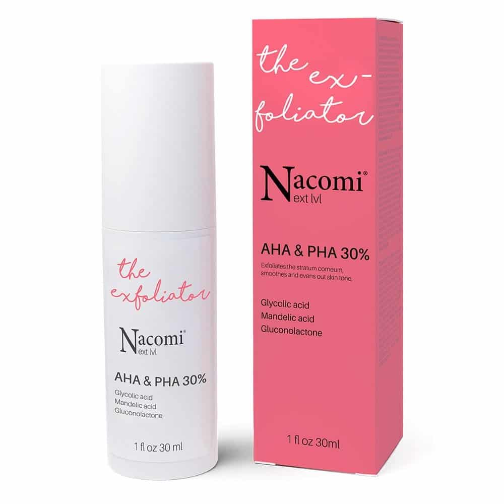 AQUA, GLYCOLIC ACID (Acide exfoliant AHA), ALOE BARBADENSIS LEAF JUICE (Aloe vera), SODIUM BICARBONATE, GLYCERIN, CITRIC ACID, GLUCONOLACTONE (Acide exfoliant PHA), MANDELIC ACID (Acide exfoliant AHA), LACTIC ACID (Acide exfoliant AHA), TARTARIC ACID, LACTOBIONIC ACID (Acide exfoliant PHA), VACCINIUM MACROCARPON FRUIT EXTRACT (Canneberge à gros fruits), SODIUM HYALURONATE CROSSPOLYMER (Acide hyaluronique), ACER SACCHARUM EXTRACT (Érable à sucre), CITRUS AURANTIUM DULCIS PEEL OIL (Huile essentielle), CITRUS LIMON PEEL OIL (Huile essentielle de Citron (Allergène)), CELLULOSE, HECTORITE, GLUCOSE (Sucre), SORBITAN OLEATE DECYLGLUCOSIDE CROSSPOLYMER, MALTODEXTRIN, XANTHAN GUM, DEHYDROACETIC ACID, RASPBERRY KETONE, BENZYL GLYCOL, BENZYL ALCOHOL (Allergène réglementé), POTASSIUM SORBATE, SODIUM BENZOATE, ETHYLHEXYLGLYCERIN, LIMONENE (Allergène réglementé) Cette lotion exfoliante de Nacomi associe un complexe d’AHA et de PHA à concentration totale de 30 %, combinant acide glycolique, acide mandélique, acide lactique, acide tartrique et acide lactobionique, complétés par la gluconolactone et l’acide lactobionique, deux PHA à action plus douce. Les AHA agissent en dissolvant les liaisons entre les cornéocytes pour accélérer le renouvellement cellulaire, estomper les taches pigmentaires et affiner le grain de peau ; l’acide glycolique, à petite molécule, pénètre rapidement et cible efficacement les irrégularités de teint, tandis que l’acide mandélique, à molécule plus large, agit plus progressivement avec un profil irritant moindre. Les PHA (gluconolactone, acide lactobionique) exercent une exfoliation de surface tout en apportant une action humectante et antioxydante, ce qui les rend mieux tolérés sur les peaux sensibles. La formule intègre également du sodium hyaluronate réticulé et du jus d’aloe vera pour limiter l’effet desséchant inhérent aux acides, ainsi qu’un extrait de canneberge à visée antioxydante. Ce produit convient aux peaux présentant une hyperpigmentation, un teint irrégulier, une texture rugueuse ou des signes de vieillissement cutané ; la présence de PHA le rend envisageable sur des peaux mixtes à sensibles, sous réserve d’une introduction progressive et d’une photoprotection rigoureuse en journée.Informations complémentaires