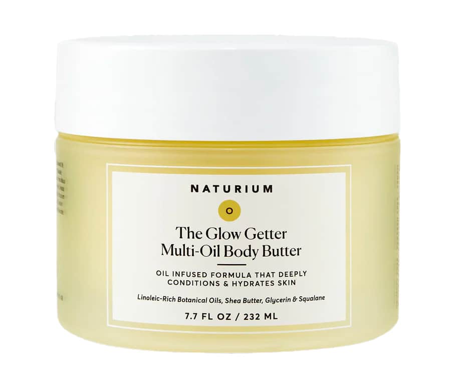 Le The Glow Getter Multi-Oil Body Butter de Naturium s’adresse principalement aux peaux sèches, déshydratées ou en manque d’éclat. Sa formulation riche en huiles végétales et beurres naturels vise à restaurer la barrière cutanée, nourrir intensément et apporter un effet lumineux à la peau du corps. Mon avis d’expert est que ce soin cible efficacement la sécheresse cutanée, les sensations de tiraillement et le manque de souplesse, tout en convenant aux peaux sensibles grâce à l’absence d’alcool et à la présence d’agents apaisants.
