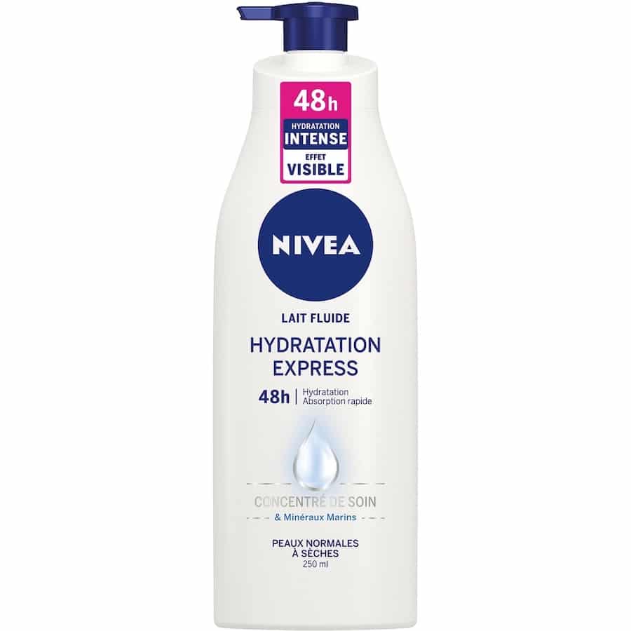 Le Lait fluide Hydratation Express de Nivea s’adresse principalement aux peaux normales à sèches en quête d’hydratation rapide et efficace. Sa texture fluide vise à offrir un confort immédiat sans effet gras, ce qui le rend particulièrement adapté à un usage quotidien, notamment après la douche. Mon analyse de la formulation montre une volonté de la marque de proposer un soin hydratant accessible, axé sur la restauration du film hydrolipidique et la prévention de la déshydratation cutanée.
