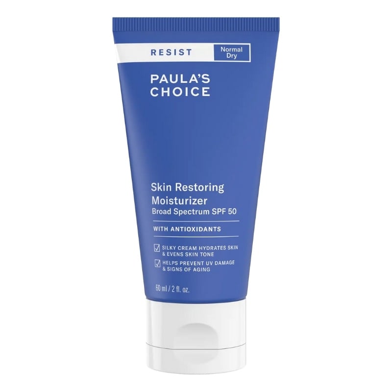 Ce soin hydratant teinté SPF 50 de Paula’s Choice associe protection solaire et soin actif dans une formule polyvalente. La protection UV repose sur des filtres chimiques (dont le **diéthylhexyl syringylidènemalonate**, un filtre UVA/UVB stabilisateur), complétés par de la **silice** qui contribue à la diffusion de la lumière. Sur le plan des actifs fonctionnels, la **niacinamide** (vitamine B3) agit sur l’homogénéisation du teint, la régulation du sébum et le renforcement de la barrière cutanée. Le **tocophérol** (vitamine E) apporte une protection antioxydante contre le stress oxydatif. L’**allantoïne** et l’**extrait d’aloe barbadensis** soutiennent l’apaisement et la cicatrisation superficielle. L’**extrait de réglisse** (*Glycyrrhiza glabra*) possède des propriétés anti-inflammatoires et dépigmentantes légères. La **capryloyl glycine** et la **sarcosine** contribuent à la régulation du microbiome cutané et à la tolérance. La base émolliente — beurre de karité, diméthicone, alcool cétéarylique — assure confort et occlusion légère. Ce produit convient aux peaux matures, sèches à mixtes, sensibles ou présentant des irrégularités de teint, cherchant à combiner hydratation quotidienne et photoprotection sans négliger les soins actifs.