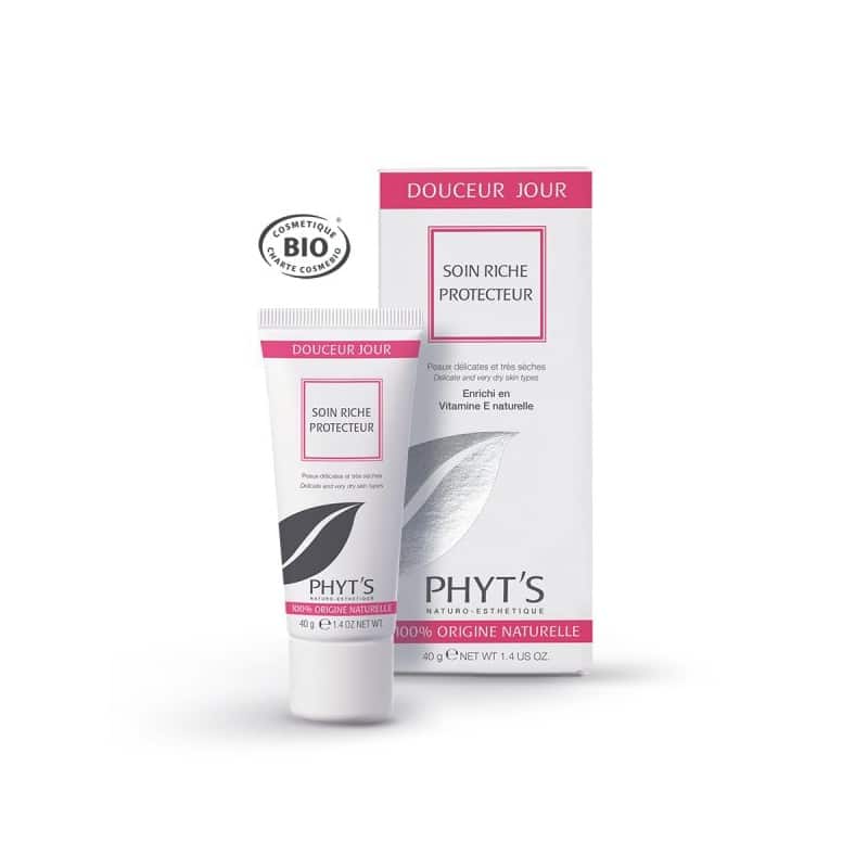 Le Soin riche protecteur de la marque Phyt’s s’adresse principalement aux peaux sèches à très sèches, en quête de nutrition intense et de protection contre les agressions extérieures. Sa formulation riche en huiles végétales et beurres naturels vise à restaurer la barrière cutanée, à apaiser les sensations d’inconfort et à prévenir la déshydratation. Mon avis d’expert : la composition s’oriente clairement vers la réparation et la protection, ce qui en fait un soin particulièrement adapté aux peaux fragilisées par le froid, le vent ou les traitements desséchants.