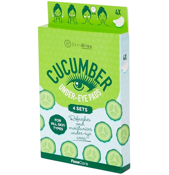 Les Cucumber Under-Eye Pads de SkinBliss sont des patches contour des yeux formulés autour d’actifs hydratants et apaisants. L’extrait de *Cucumis sativus* (concombre) apporte des propriétés décongestionnantes et rafraîchissantes, tandis que l’extrait de *Chamomilla recutita* (camomille) exerce une action anti-inflammatoire et calmante sur la peau sensible du contour des yeux. Le panthénol (provitamine B5) favorise la réparation de la barrière cutanée et renforce l’hydratation, complété par le sodium PCA et l’hyaluronate de sodium, deux agents hygroscopiques qui captent et retiennent l’eau dans les couches superficielles de l’épiderme. L’allantoïne contribue à adoucir et à apaiser les irritations légères. La glycérine assure un effet humectant de base, et l’hydroxyéthylcellulose sert de gélifiant pour maintenir les actifs au contact de la peau. Ce produit convient particulièrement aux peaux présentant des signes de fatigue, de légères poches ou une sécheresse localisée autour des yeux, y compris les peaux sensibles.