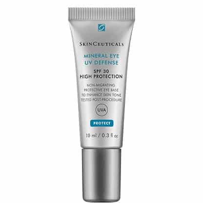 Le **Mineral Eye UV Defense SPF30** de SkinCeuticals est une protection solaire minérale formulée spécifiquement pour la zone périorbitaire, particulièrement fine et sensible. Son filtre actif repose exclusivement sur le **dioxyde de titane (Titanium Dioxide)**, un filtre minéral inorganique qui agit par réflexion et diffusion du rayonnement UV, sans pénétration cutanée — ce qui le rend adapté aux peaux réactives et à la peau délicate du contour des yeux. La base de formulation associe des **silicones de structure** (diméthicone, diméthicone crosspolymer, diméthicone/vinyl diméthicone crosspolymer) qui confèrent une texture légère, lissante et non occlusive, tout en améliorant l’étalement du produit. L’**huile de jojoba hydrogénée** et le **triéthylhexanoïne** apportent un léger effet nourrissant sans alourdir la formule. Le **2-oléamido-1,3-octadécanediol** est un actif dérivé des céramides qui soutient la fonction barrière cutanée. Les pigments minéraux (CI 77491, 77492, 77499) permettent une légère correction chromatique adaptable à différents teints. Ce produit convient particulièrement aux peaux sensibles, intolérantes aux filtres chimiques, ainsi qu’aux personnes sujettes aux irritations oculaires ou portant des lentilles de contact.