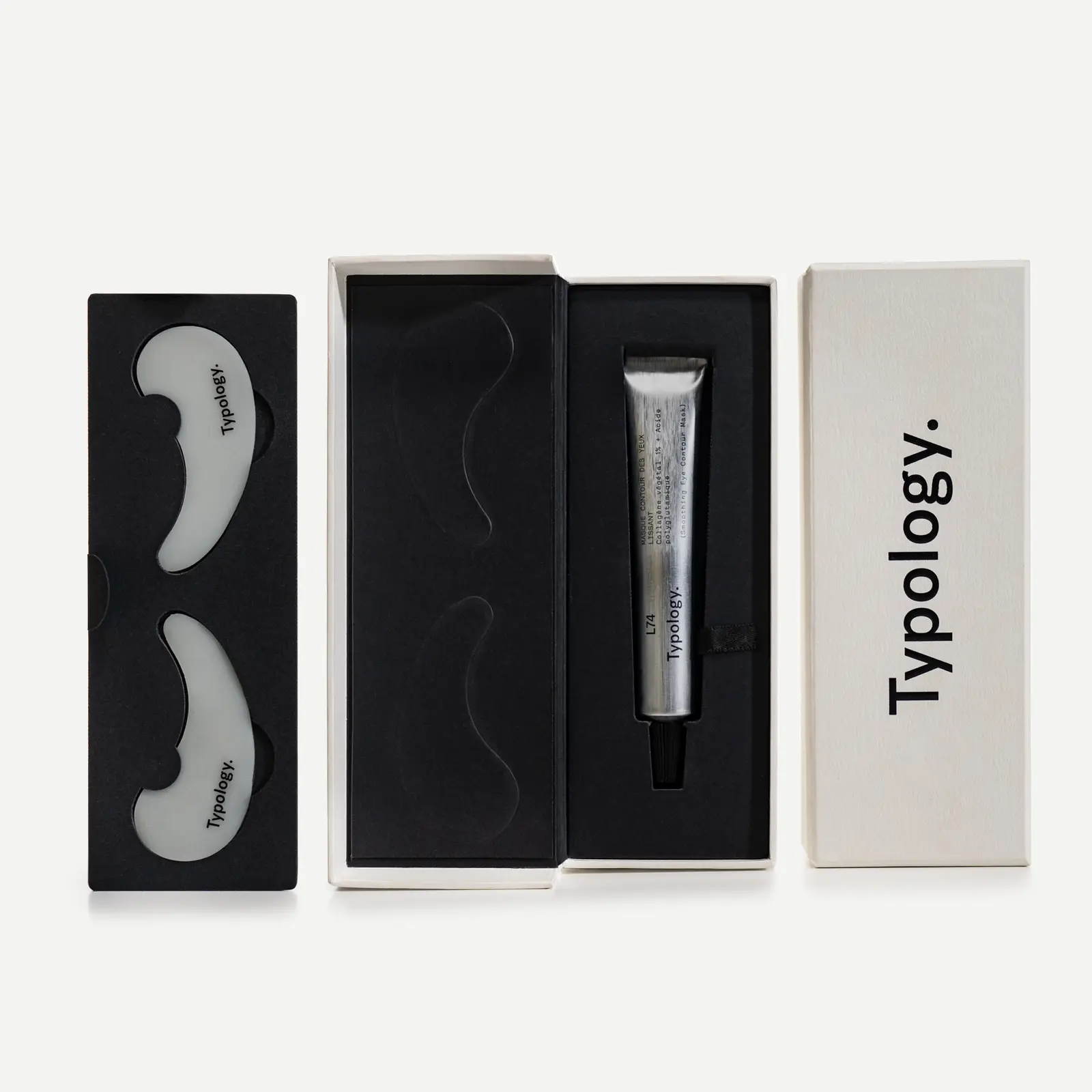 AQUA, SQUALENE (Squalène), PENTYLENE GLYCOL, LAURYL LAURATE, BUTYROSPERMUM PARKII BUTTER (Beurre végétal de karité), GLYCERYL STEARATE SE (Comédogène potentiel), HYDROXYPROPYL STARCH PHOSPHATE, CETEARYL ALCOHOL, COCOYL HYDROLYZED COLLAGEN, GENTIANA LUTEA ROOT EXTRACT (Gentiane), GLYCERIN, POLYGLUTAMIC ACID (Actif), XANTHAN GUM, NICOTIANA BENTHAMIANA HEXAPEPTIDE-40 SH-POLYPEPTIDE-47 (Peptide), GLYCERYL STEARATE CITRATE, PROPANEDIOL, O-CYMEN-5-OL, SODIUM HYDROXIDE, CITRIC ACID Ce coffret de la marque Typology associe un masque crème et des patchs dédiés à la zone périorbitaire, une région anatomiquement fine et particulièrement sensible aux signes de vieillissement. La formule repose sur plusieurs actifs fonctionnels : l’**acide polyglutamique**, polymère d’origine biotechnologique, forme un film hydratant en surface tout en stimulant la synthèse d’acide hyaluronique endogène ; le **collagène hydrolysé de coco** (Cocoyl Hydrolyzed Collagen) apporte des acides aminés filmogènes qui soutiennent temporairement la structure cutanée ; l’**extrait de gentiane jaune** (*Gentiana lutea*) possède des propriétés antioxydantes et apaisantes documentées. Le **squalène** et le **beurre de karité** (*Butyrospermum parkii*) constituent la base émolliente, renforçant la barrière lipidique et limitant la perte insensible en eau. Le **Nicotiana benthamiana hexapeptide-40 SH-polypeptide-47**, peptide de synthèse, agit sur les mécanismes de contraction musculaire superficielle, contribuant à l’effet lissant des ridules d’expression. Ce produit convient aux peaux présentant des signes de déshydratation, de relâchement cutané léger ou de ridules autour des yeux, quel que soit le type de peau, y compris les peaux sensibles grâce à l’absence de parfum dans la formulation.Informations complémentaires